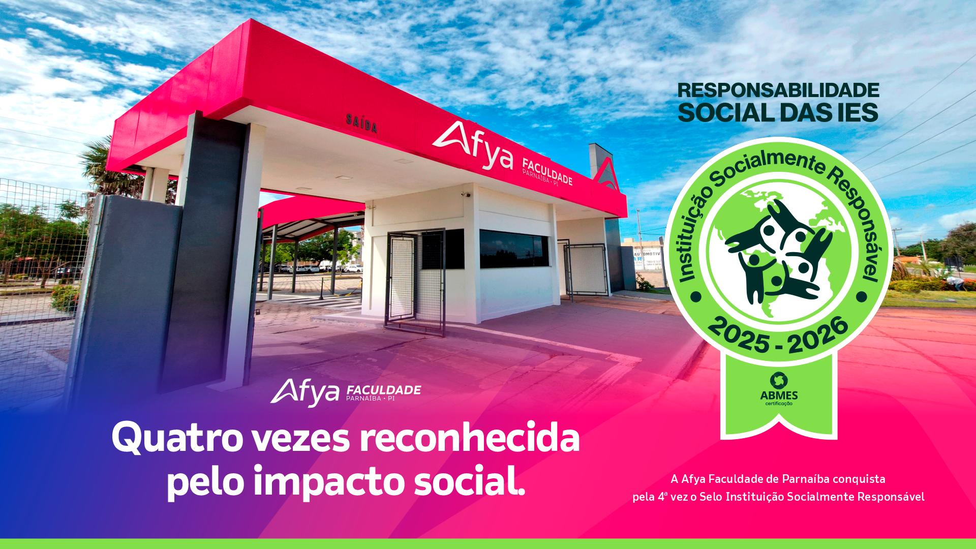 A Afya Parnaíba, em sua quarta conquista consecutiva, tem o orgulho de anunciar que foi reconhecida com o Selo de Instituição Socialmente Responsável da ABMES, referente ao período 2025/2026.