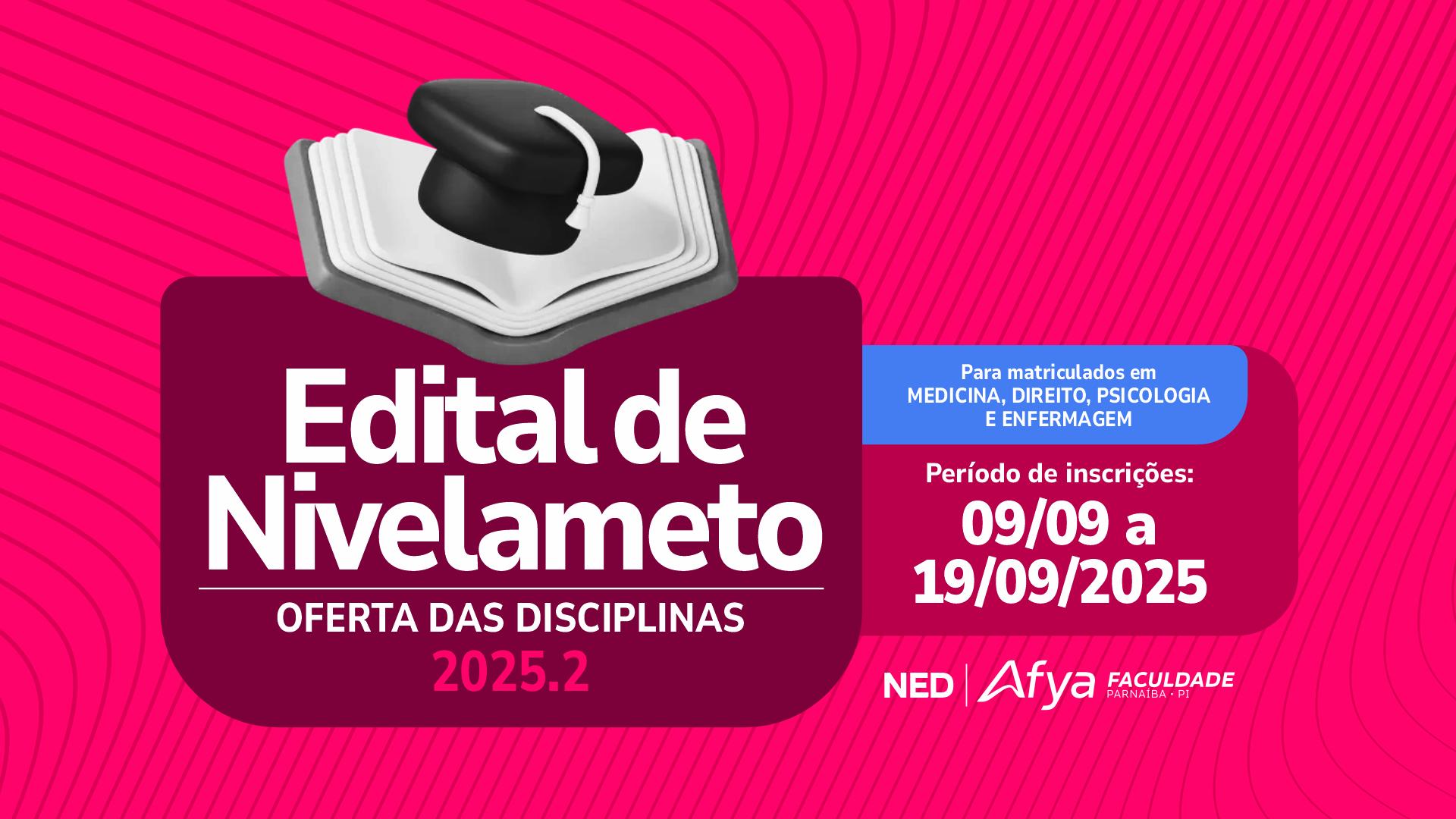 A AFYA FACULDADE DE PARNAIBA - Grupo Afya Educacional, por meio do Núcleo de Experiência Discente (NED), torna público o processo de oferta das Disciplinas de Nivelamento, conforme as diretrizes da Política Institucional de Apoio ao Discente.