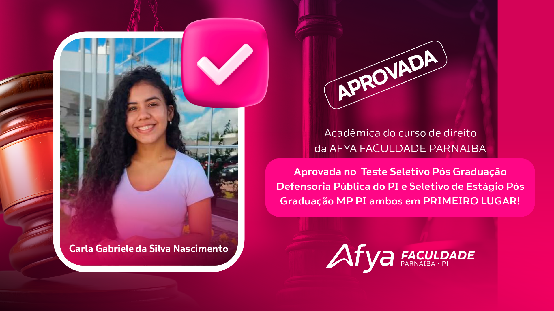 Carla Gabriele da Silva Nascimento, acadêmica do curso de direito no Teste seletivo Pós Graduação Defensoria Pública do PI e Seletivo de Estágio Pós graduação MP PI